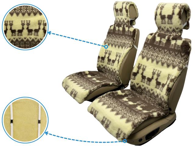 Хутряні накидки універсальні чохли - майки на передні сидіння авто з овчини (Еко-хутро) принт "Олені"