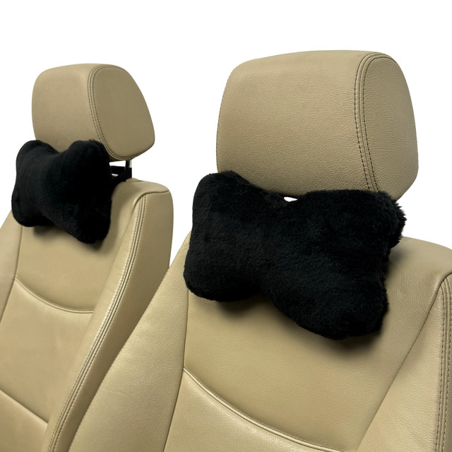 Автомобільна подушка на підголівник з еко-хутра в салон автомобіля Чорна 1 шт