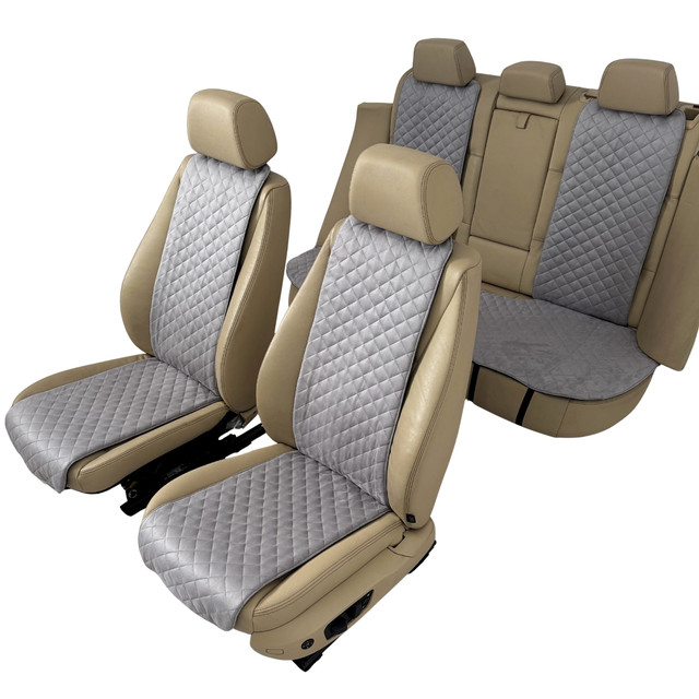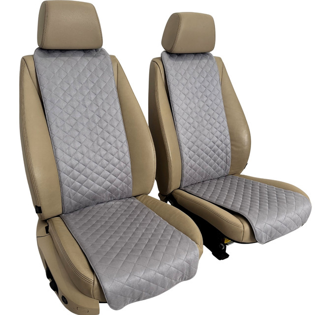 Комплект із двух універсальних накидок - чохлів з алькантари на передні сидіння автомобіля захистить їх від бруду, плям та зносу, водночас надаючи салону стильного й доглянутого вигляду. Матеріал дихає, тому не парить влітку та зберігає тепло взимку, забезпечуючи комфорт у будь-яку пору року.