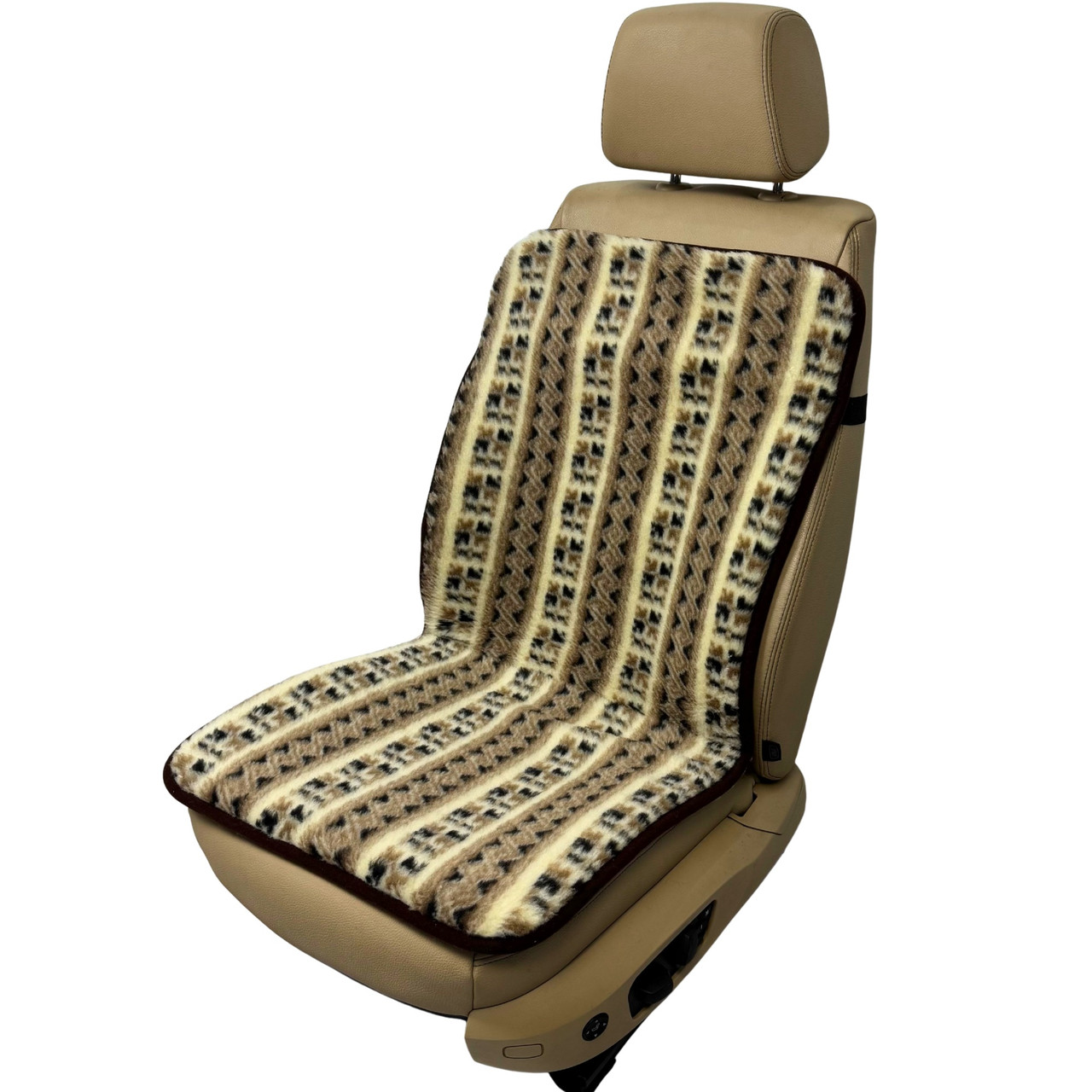 Хутряна універсальна накидка - чохол на переднє сидіння авто з овчини (Еко-хутро) орнамент